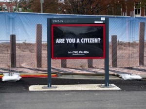 The University of Massechussets Amherst campus had divided its campus by a to-scale photographic replica of the vehicle fence that runs along the international boundary in southern Arizona. The particular stretch of fence being represented was erected in 2007 by Homeland Security and now divides the Tohono O’odham Nation – the second largest Native American reservation in the country – into two parts. What happens when we divide a territory that the community imagines as contiguous? The project was developed by Catherine D’Ignazio of the Institute for Infinitely Small Things.